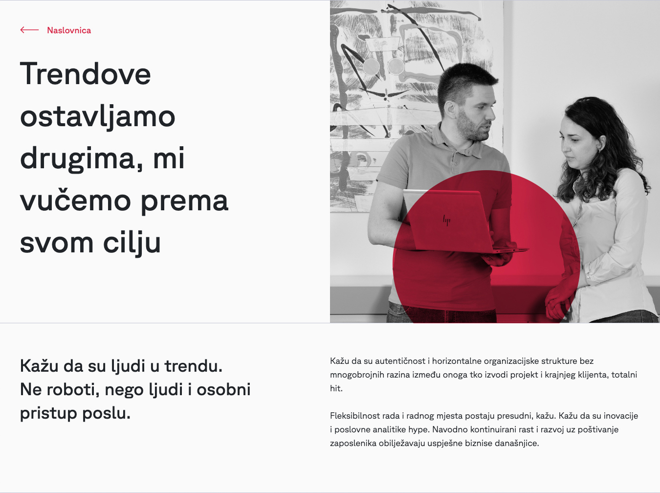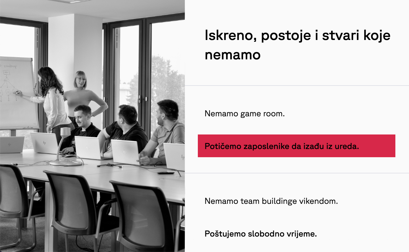 Kako bi taj autentični etos Compinga kvalitetno i lako prenijeli javnosti, udružili smo se sa stručnjacima za brending iz Startaparata, koji su kroz snažnu strategiju brendiranja i jedinstveni ton glasa formirali Compingov manifest te postavili čvrste temelje za cjelokupni narativ brenda. Gradeći na tome, organizirali smo sadržaj i napisali tekstove za dio web stranice koji komunicira kulturu tvrtke. Cilj je bio prenijeti Compingovu predanost vrhunskoj usluzi i strast prema ljudima u formi prijateljskog razgovora s tehnološkim guruom – glasom koji je vrijedan povjerenja, pristupačan i uvijek spreman pomoći.
